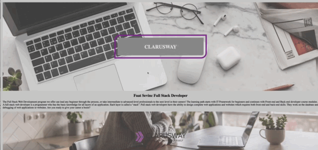 08.2021 – 03.2022 Clarusway Frontend Developer Course Certificate (Frontend Web Developer)